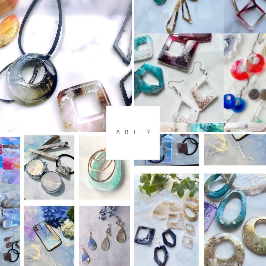 アルコールインクとレジンを使ってアクセサリーや箸置きなどアートをものに変えていきます。。