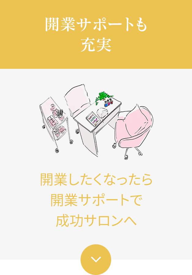 就職はもちろん、ホームサロン開業、お友達相手のセミプロネイリストから人気チェーン店のフランチャイズオーナーまで。あなたらしい働き方が出来ます。完全フォローアップ体制で応援します。