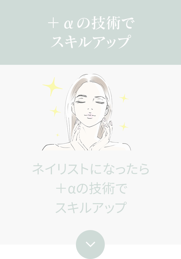 TOKYO NAIL+COLLEGEの「+」には、「+1の技術」「+1のサービス」「+1のノウハウ」、そしてその「+1」で心と人生に彩(いろどり)を加え豊かさを実現する 、という意味が込められています。 「好きなことを学び、好きな仕事で生きていく」、まずは自分との約束から始めてください。