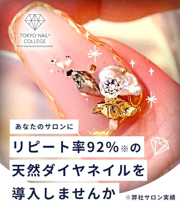 TOKYO NAIL+ COLLEGEで学べるダイヤモンドジュエリーネイルは、単なるアート技術だけでなく、実際にサロンで再現できる他にはない「大切な成功ノウハウ」もお伝えするものです。初めてこの技術を知る方も、知ってはいるけれどもその実態を知らない方も、その技術の本質や魅力をぜひ感じてください。技術を身につけて、一緒にスキルアップしましょう!