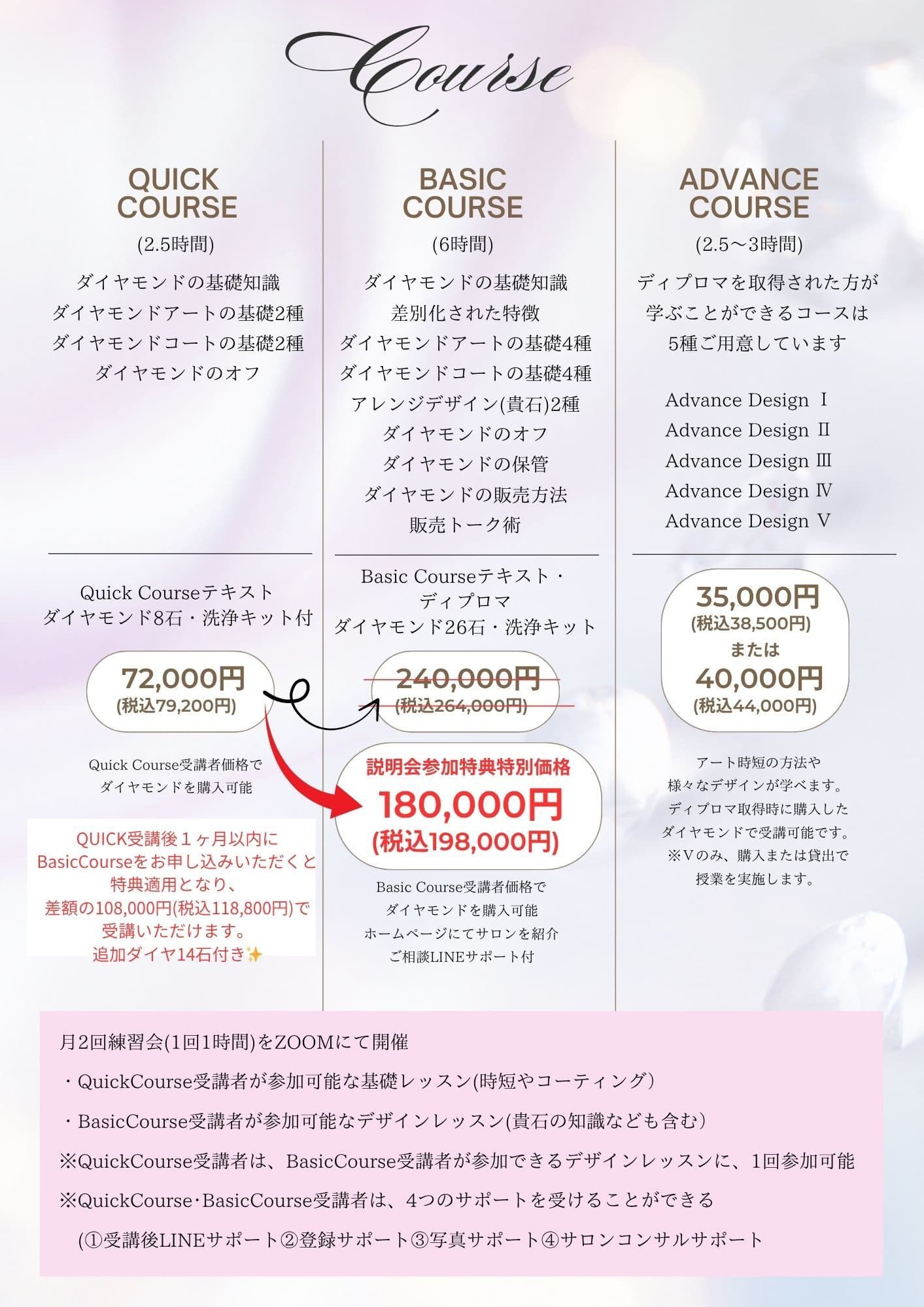 | 受講後特典 | ・QuickCourse受講者価格でダイヤモンドを購入可能 |