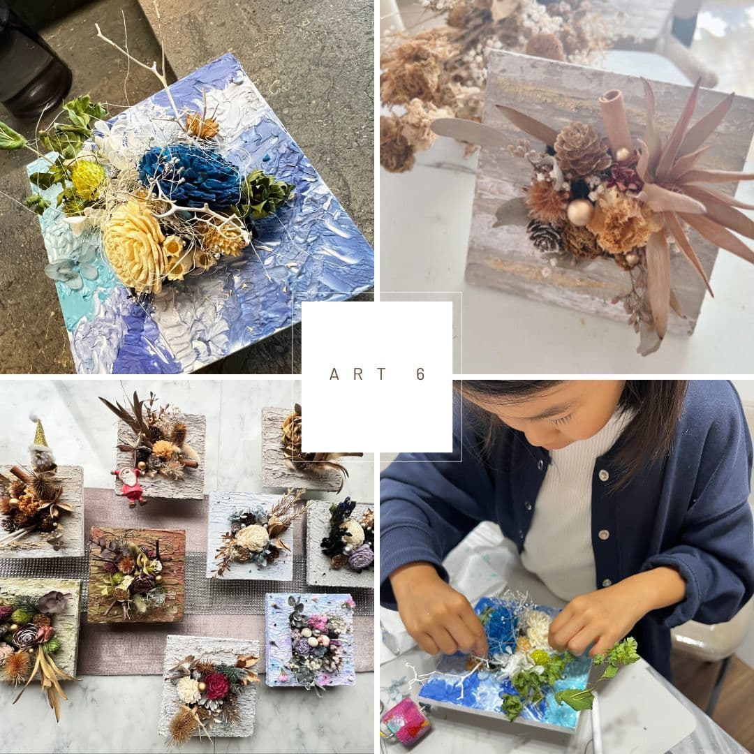 ペインティングナイフを使い、立体に作る方法やグラデーションの方法を学びアートの感覚や感性も広げながら楽しんでいきます。+α 本物花材を使って(ドライフラワー・プリザーブドフラワー)