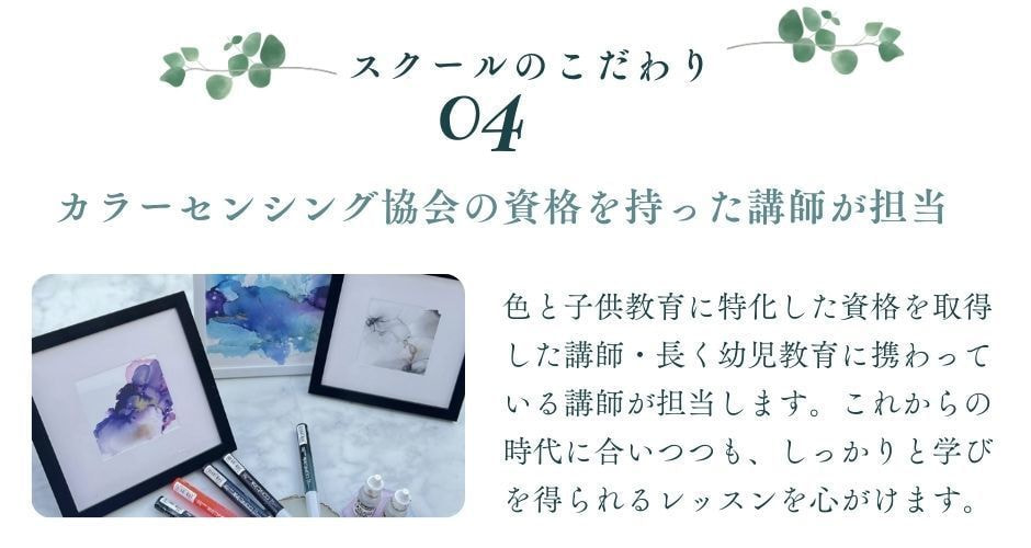 講座は、①アート体験ワークショップ(60~80分の制作)と、②Japan Color Sensing+AllianceのART講座(ART1~12、90分、テキスト&修了証付)の2種類があります。