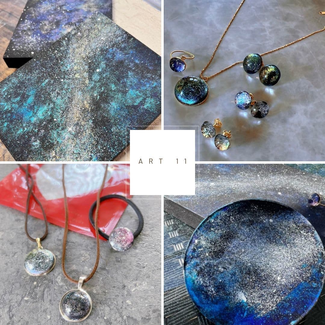 アルコールインクとレジンを使ってアクセサリーや箸置きなどアートをものに変えていきます。。