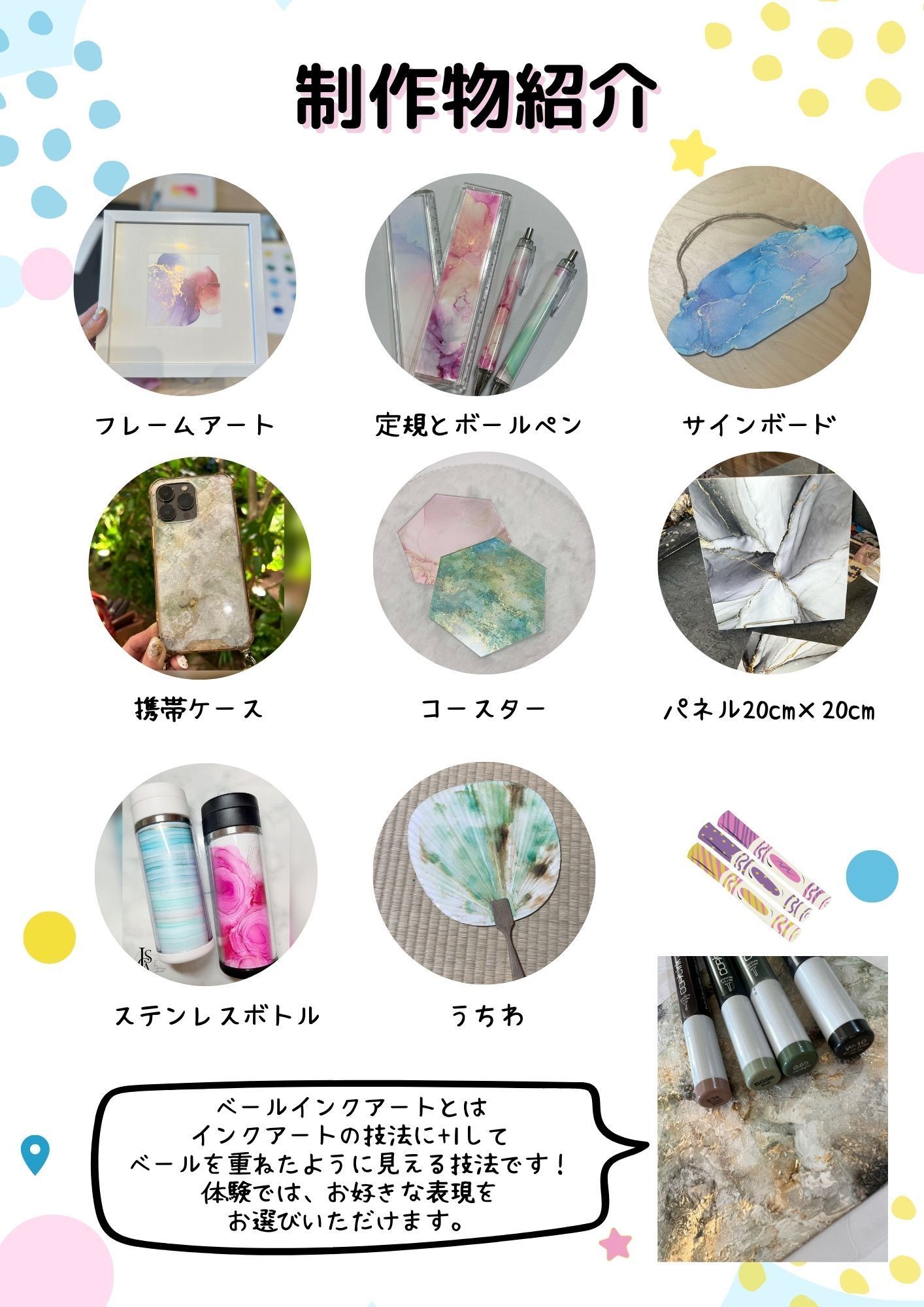 アルコールインクアート体験の楽しさを知って頂くイベントを開催できます。